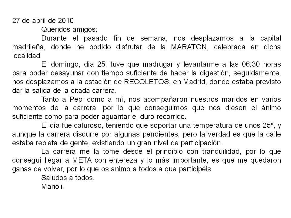 ESTOS SON LOS RESULTADOS DE NUESTROS ATLETAS EN EL MARATON DE MADRID 2010,