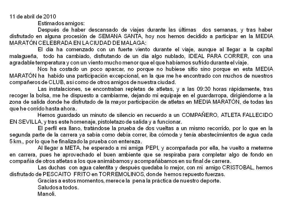 BUENA PARTICIPACION DE NUESTRO CLUB EN LA MEDIA MARATON DE MALAGA 2010